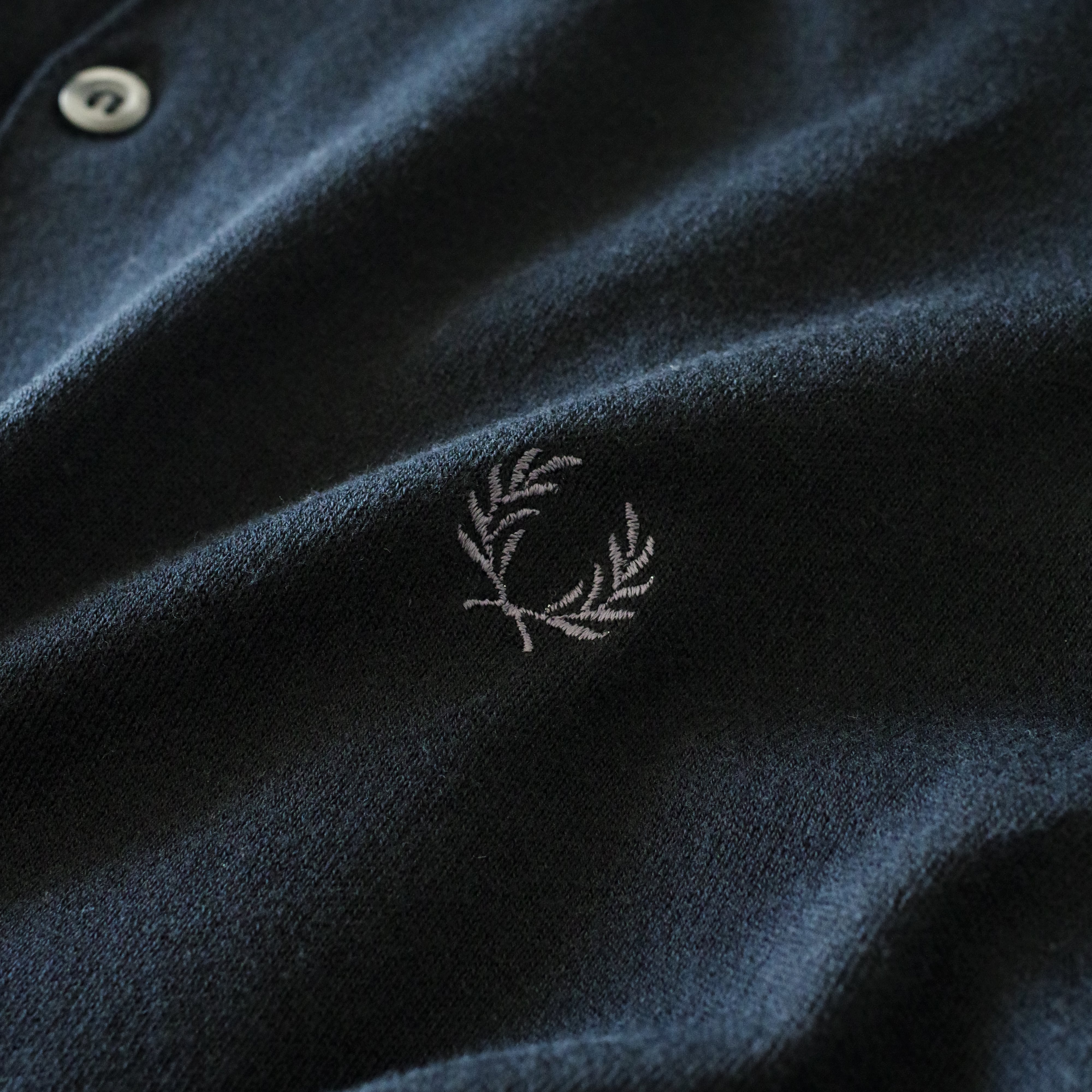レトロ&シックなグレイッシュトーンのカラーリング、月桂樹刺繍や衿ラインも同色系で通常のフレッドペリーポロより大人っぽい印象です。
